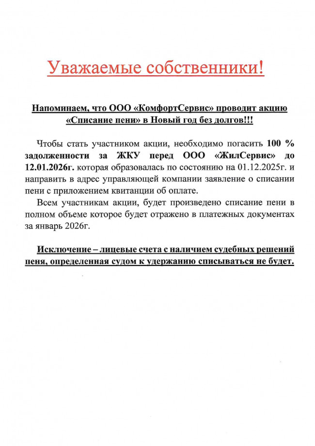 АКЦИЯ! АКЦИЯ! АКЦИЯ! В НОВЫЙ ГОД БЕЗ ДОЛГОВ!