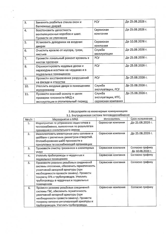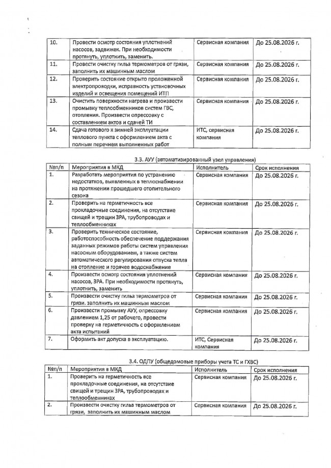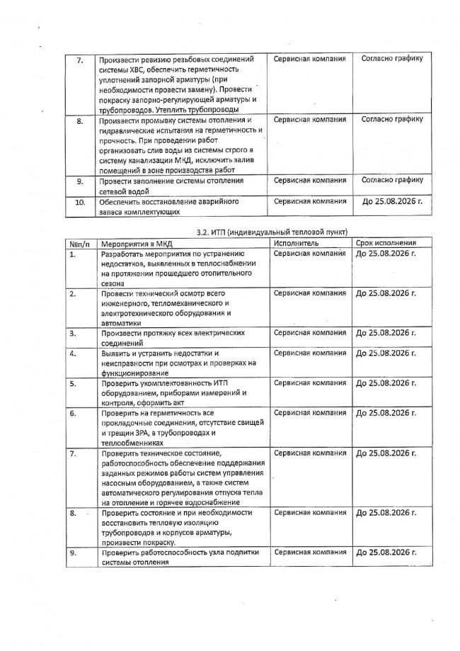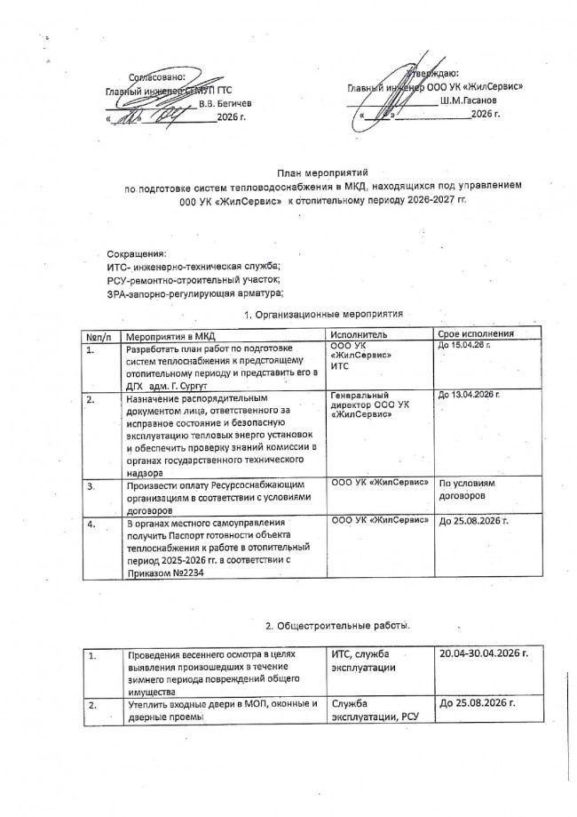 Мероприятия по подготовке МКД к осенне-зимнему периоду ООО УК «ЖилСервис» 2026-2027гг.